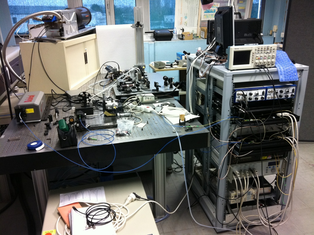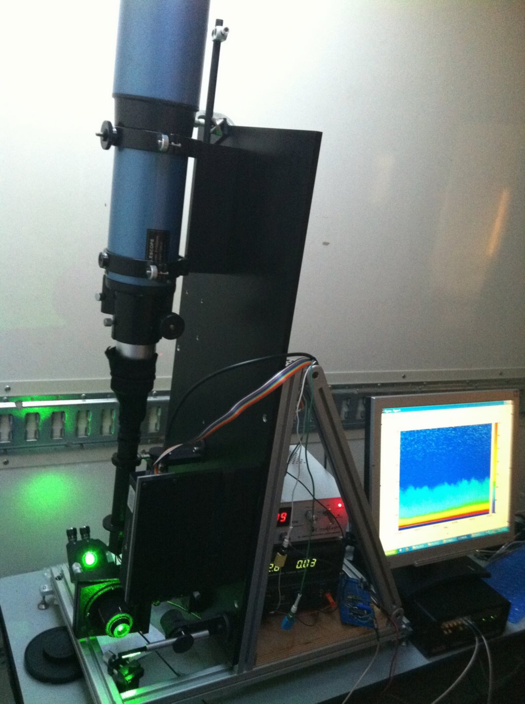 Les images ci-dessous montrent le développement instrumental lidar depuis 2003 jusqu’à la mise en opération sur le terrain.Les débuts: 2003-2005Site d’expérimentation Lidar au LMD, Ecole Polytechnique en 2005Laser et premier lidar à 2-µm pour la mesure du CO2 atmosphérique (LIDIA) (2004)Vue du lidar LIDIA dans la salle d’expérimentation du 2ème étage du LMD (2004)Juan Cuesta, Pierre Flamant et Fabien Gibert à la conférence ILRC, Matera (2004)Claude Loth et Juan Cuesta avec le lidar multi-longueur d’onde MOBILIS (2004)Lidar à absorption différentielle (LIDIA) à 2 µm effectuant des mesures de vent et de CO2 horizontales (2005)Didier Bruneau et Fabien Gibert autour du lidar à 2-µm EMIL-LIDIA (2004) Dimitri Edouart au travail sur la station lidar MOBILIS (2006)Développement instrumental LIDAR : 2008-2013Microlidar développé pour le sondage des basses couches de l’atmosphère (2012)Florian Le Mounier et Dimitri Edouart travaillant sur le système de référence spectral fibré de la source laser à 2 µm du lidar COWI (2013)Lidar à 2-µm pour la mesure du vent et du CO2 (COWI) (2012) Instrumentation actuelle COWI – TERA : après 2014Test de nouvelles photodiodes à avalanche HgCdTe avec le lidar COWI (2016)Intégration mécanique et thermique du laser à 2 µm (2018)Laser et amplificateur à 2-µm réalisés dans le cadre du projet ESA PHLAC – Source laser actuelle du lidar COWI (2017)Lidar Raman pour la mesure de température et de vapeur d’eau dans l’atmosphère (TERA) en opération (2019)Station mobile lidar COWI pour la mesure 3D du vent, du CO2 et de H2O (2014)Campagne LIDAR sur le terrainMOBILIS en opération lors de la campagne COPS : Convective and Orographically-induced precipitation study (2007)Transport du container avec le lidar COWI avant la campagne SABLE (2014)Photomètre solaire et container MOBILIS installé au centre de la Météorologie Algérienne à Tamanrasset, Algérie (2006)Lidar MOBILIS et mât avec instrumentation in situ (anémomètre sonique) en opération à Tamanrasset, Algérie (2006)Dimitri Edouart, Juan Cuesta et Fabien Gibert entourés de collègues de la météorologie Algérienne – Tamanrasset (2006)Campagne WISDOM (2007): WLEF in situ and Differential Absorption Lidar Experiment for CO2 Measurement, Wisconsin, USA. Fabien Gibert, Syed Ismail, Jeffrey Beyon et Grady Koch devant le lidar 2-µm de la NASA et la tour WLEF de 400m de haut en arrière plan.Lidar COWI et Microlidar en opération lors de la campagne SABLE : Surface-Atmosphere Boundary-layer exchanges Experiment, Pforzheim, Allemagne (2014)Autre InstrumentationStation de flux par corrélation turbulente installée sur la tour de Trainou à 50 m lors du projet CO2-MEGAPARIS (2011)